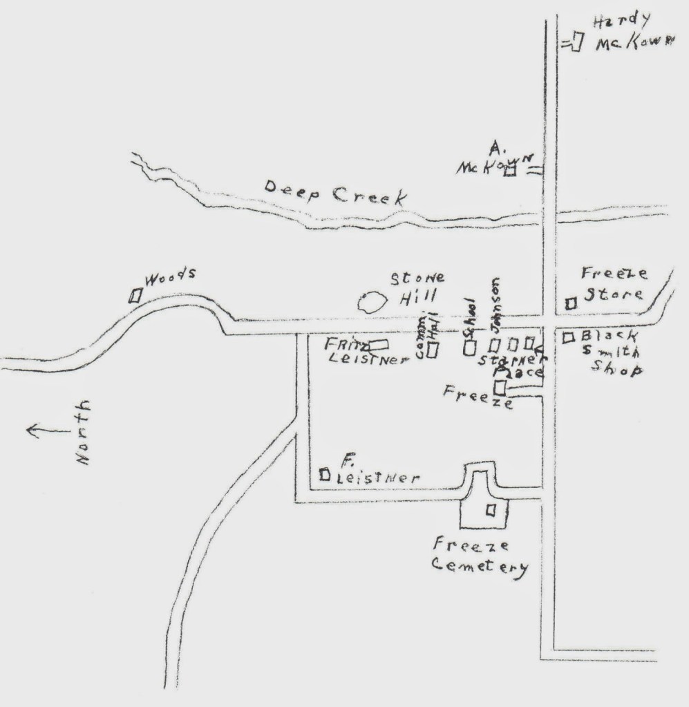 Over a hundred years ago, settlers journeyed to northern Idaho with high hopes. As homesteaders, farmers and others migrated onto the Palouse Prairie, near Deep Creek. The soil was fertile, and forests were abundant, making it easier to cut lumber for new houses and barns. One of the sawmills in Freeze was run by Mr. Strong, who furnished the lumber for this church and helped construct it. In time, a mill churned out the materials for a blacksmith shop, a general store and a post office. C.E. Freeze donated the land for the church and its spire rose above the farming town in 1899. Also, in 1899 John Starner came to Freeze and applied to become the postmaster for the area, ranging from Garfield, Washington to Princeton, Idaho. John Starner became not only postmaster but also built a general store in Freeze.